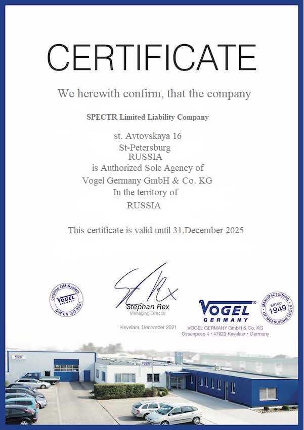 ООО КОМПАНИЯ «СПЕКТР-ИНСТРУМЕНТ» является единственным официальным представителем фирмы Vogel в России и странах СНГ.