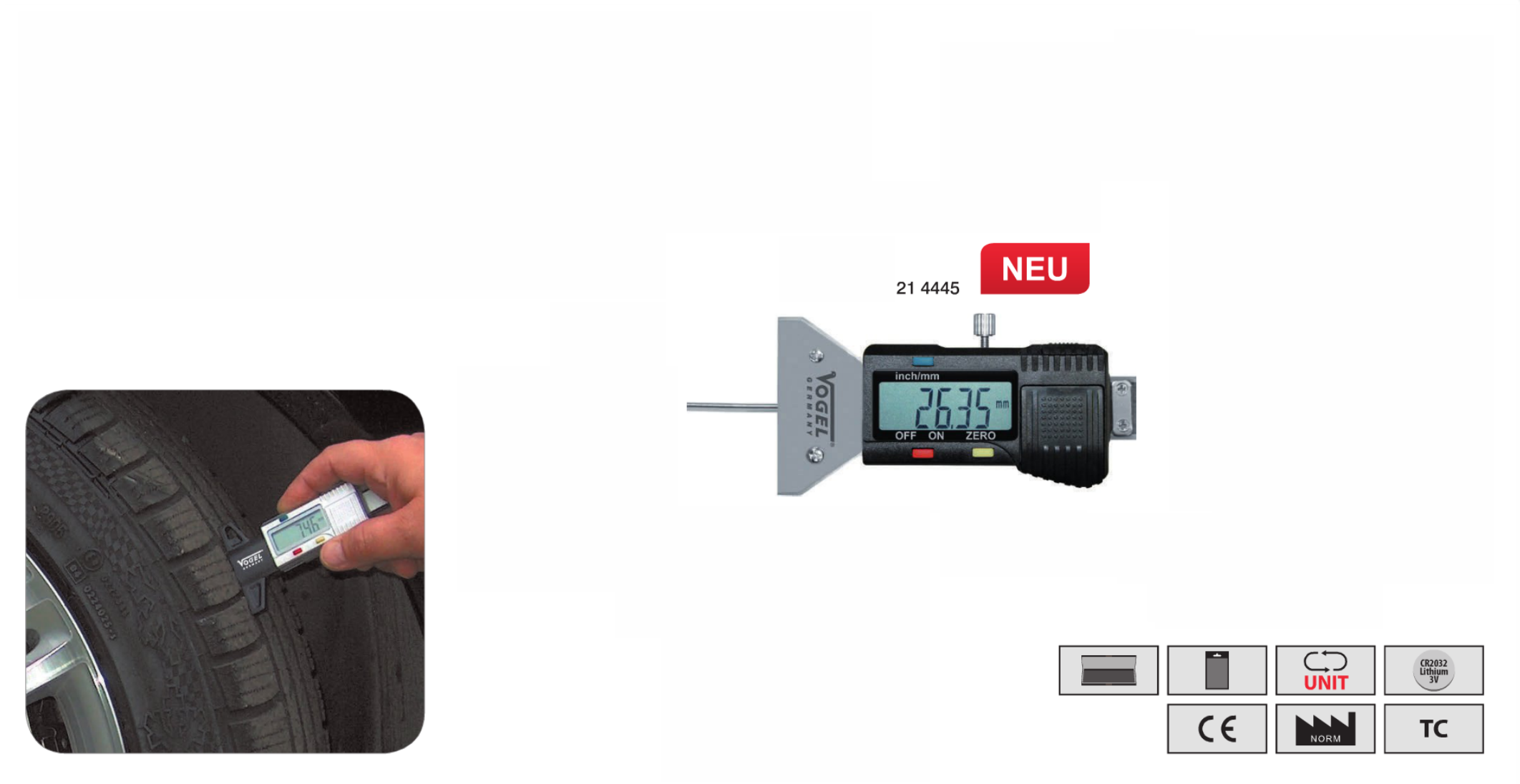 Глубиномер 0-25 цифровой протектора шин нерж исполнение Vogel