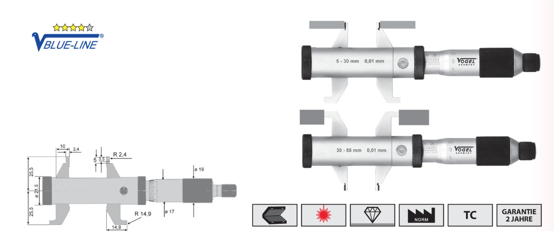 Микрометр 5-55 для внутренних измерений Vogel