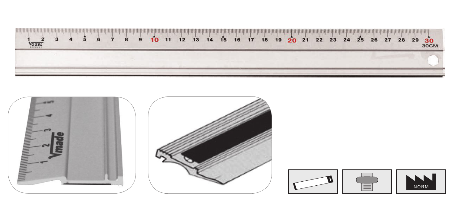 Линейка 300 из твердого алюминия для школ и ручных работ Vogel