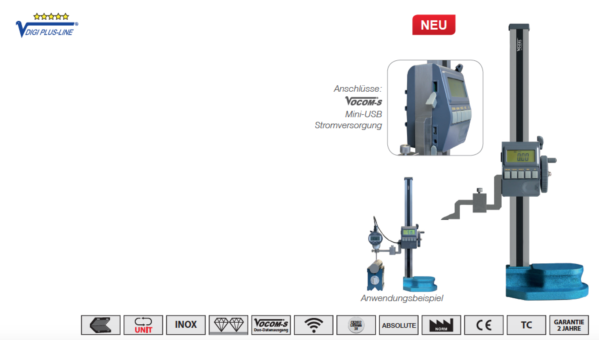 LCD-дисплей с четким считыванием, абсолютная система измерений, высота цифр 14 мм