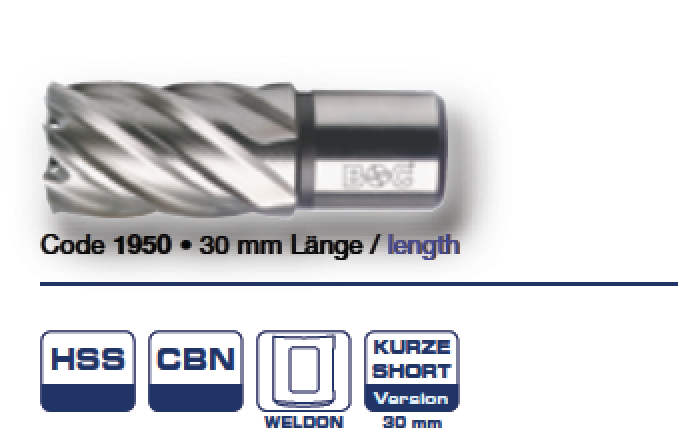 Сверла ∅ 12,0-60,0 HSS корончатые L реж=30 1950 Bohrcraft